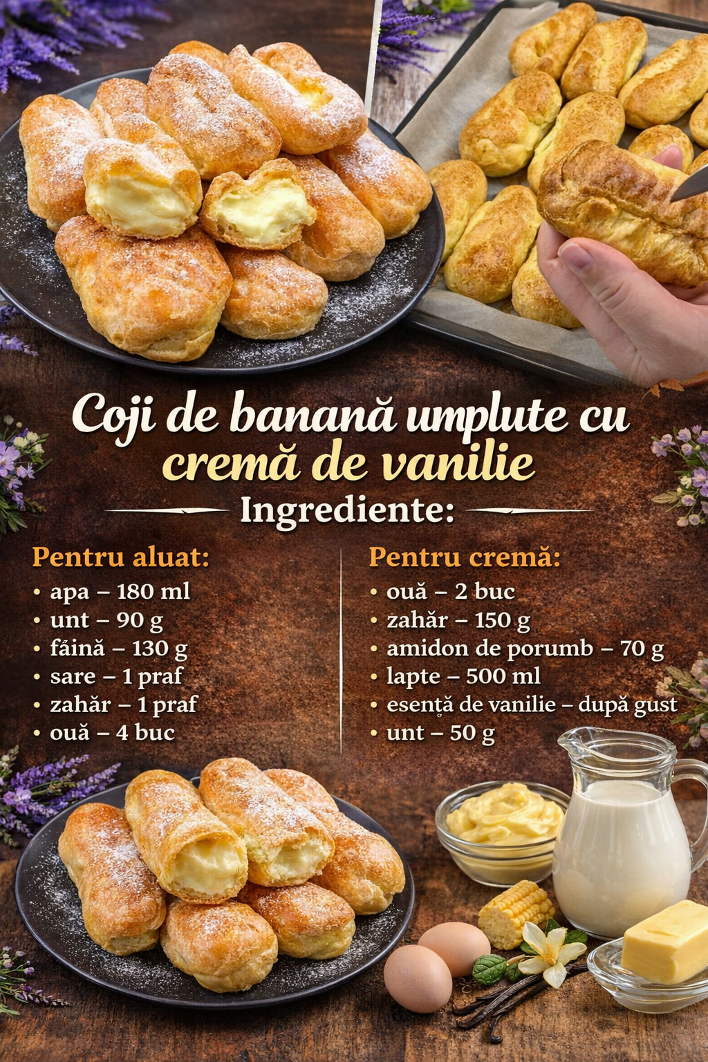 Pentru cafea, puteti face banane pufoase din aluat umflat. Umple-le cu crema de vanilie si combinatia va fi cu adevarat delicioasa.