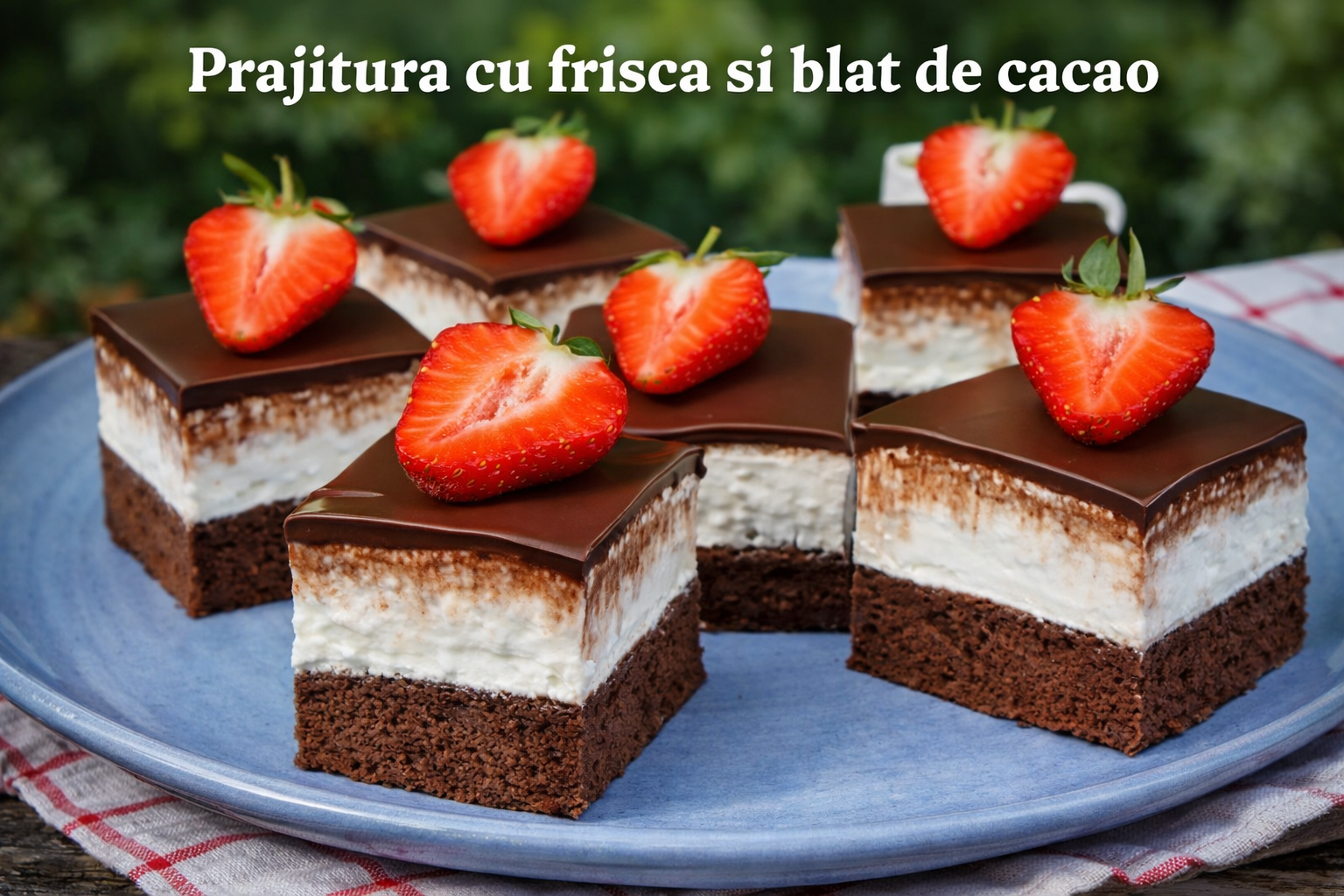 Bine insiropata si usor de preparat- Prajitura cu frisca si blat de cacao