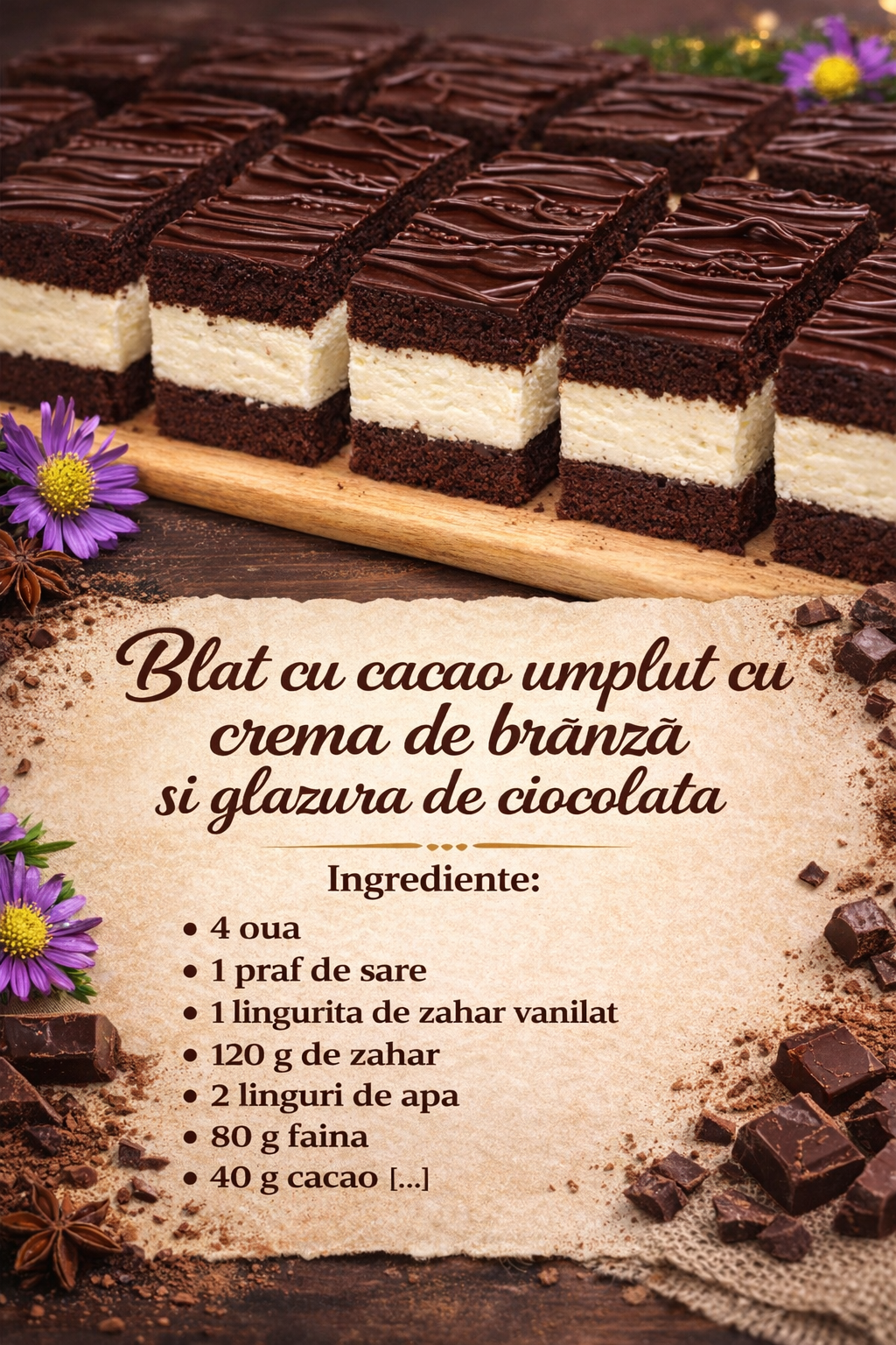 Blat cu cacao umplut cu crema de branza – Prajitura delicioasa si aromata