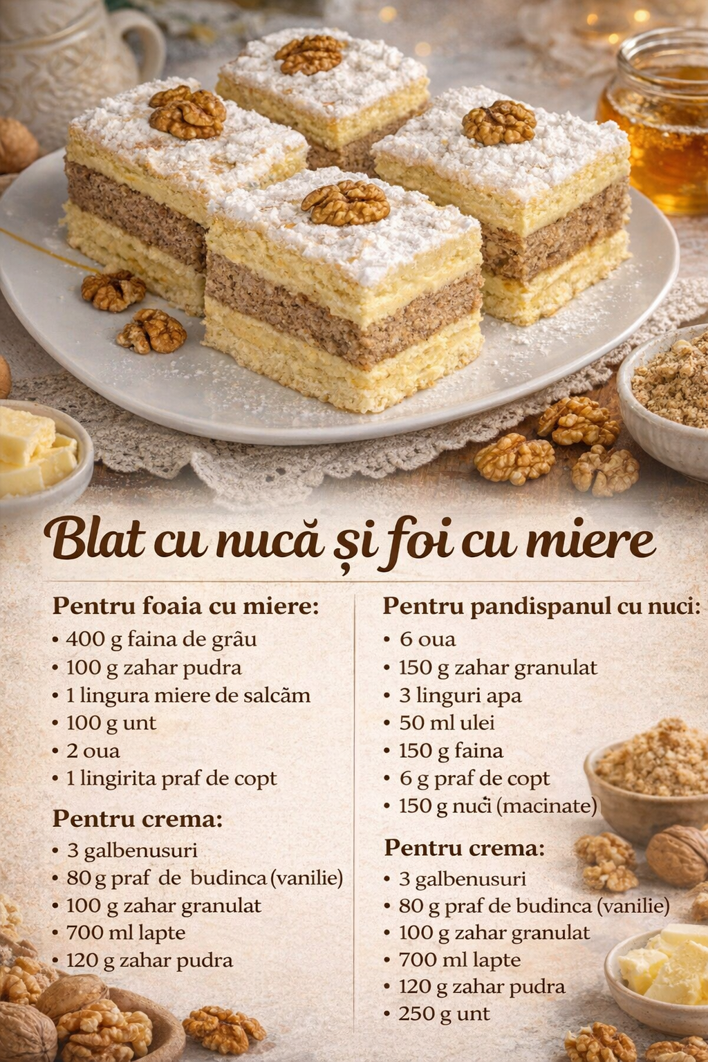 Blat cu nuca si foi cu miere- Prajitura delicioasa pentru ocazii speciale