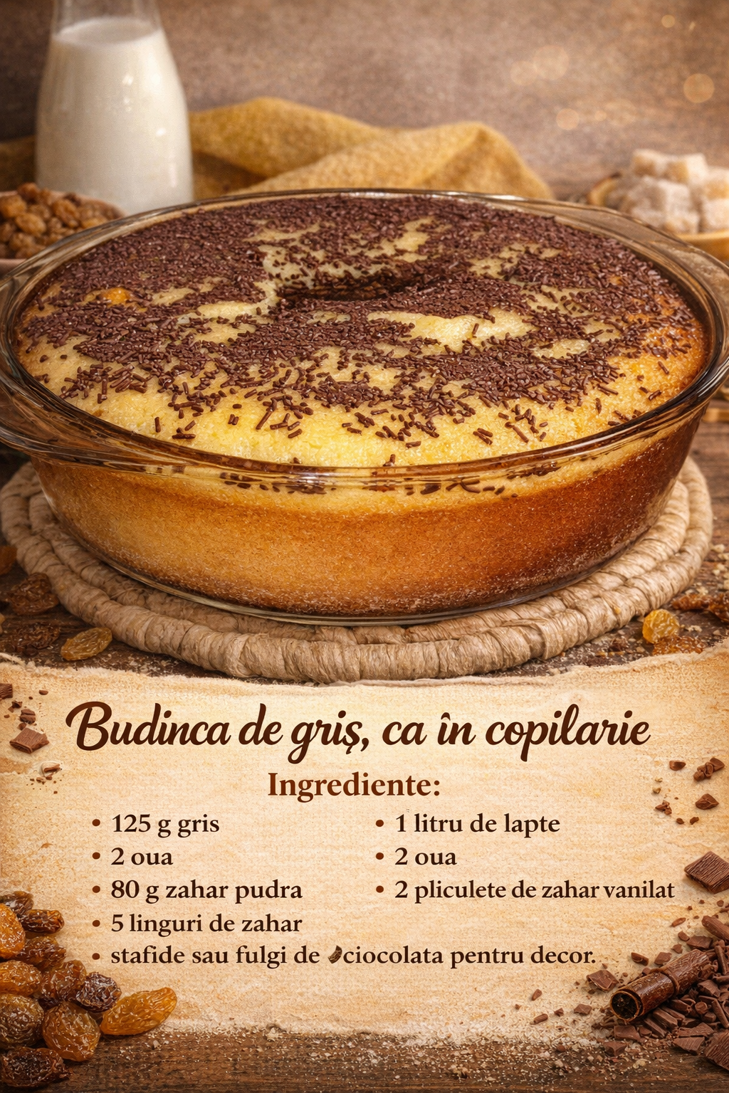 Servin desertul decorat cu stafide sau fulgi de ciocolata.