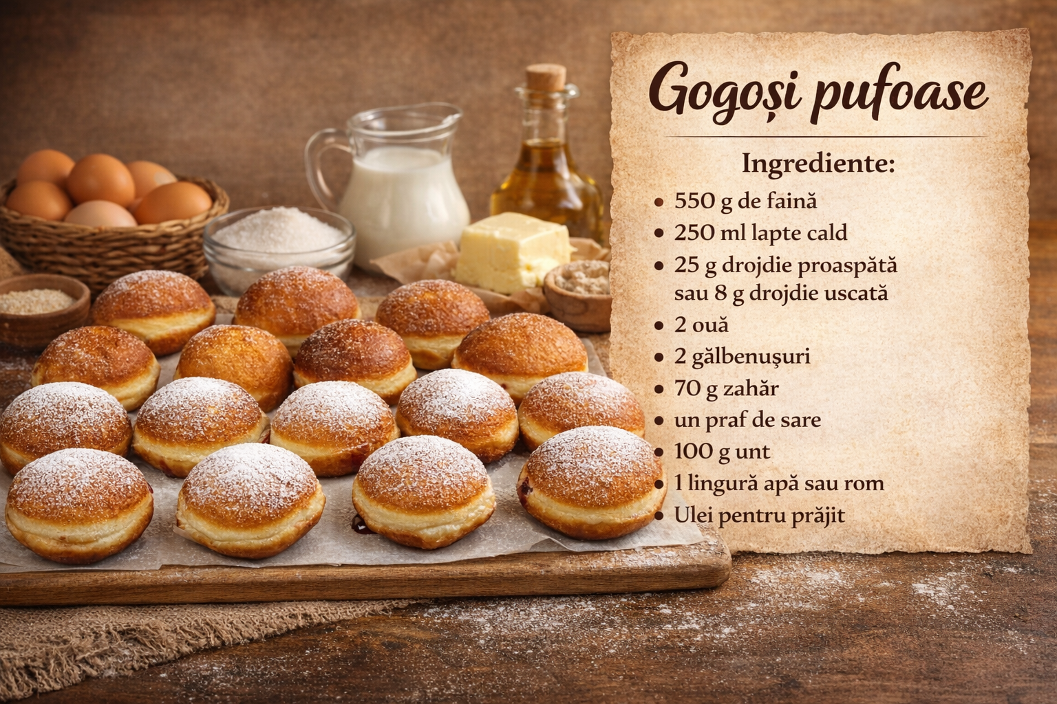 Apoi asezati aceste gogosi pe o tava stearsa cu putin ulei, acoperiti si lasati sa creasca inca 30 de minute.