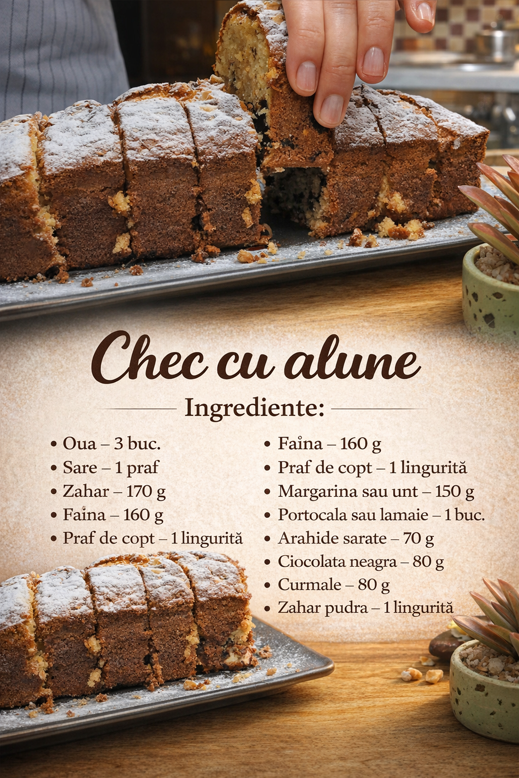 Vom coace aluatul intr-o tava clasica dreptunghiulara pentru chec acoperita cu hartie de copt.