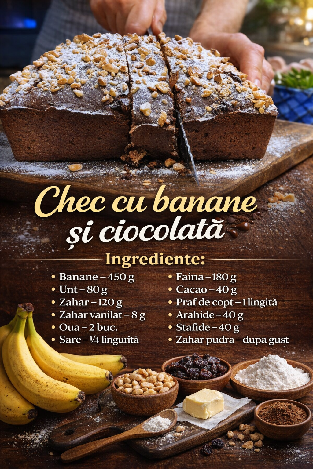 Chec cu banane si ciocolata- Foarte delicios, familia mea il adora