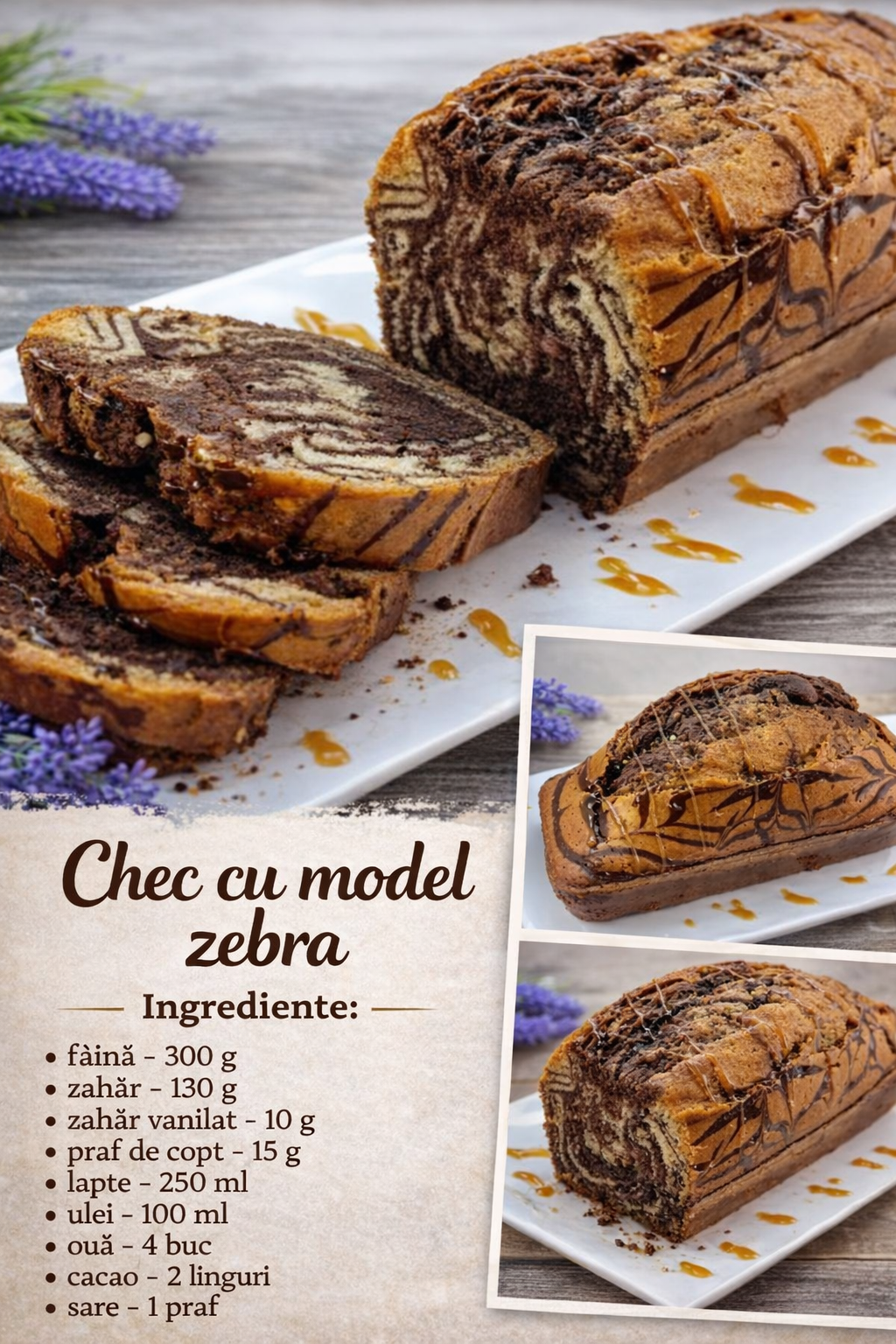 Puteti acoperi checul cu zahar pudra, stropiti usor cu glazura de caramel sau ciocolata.