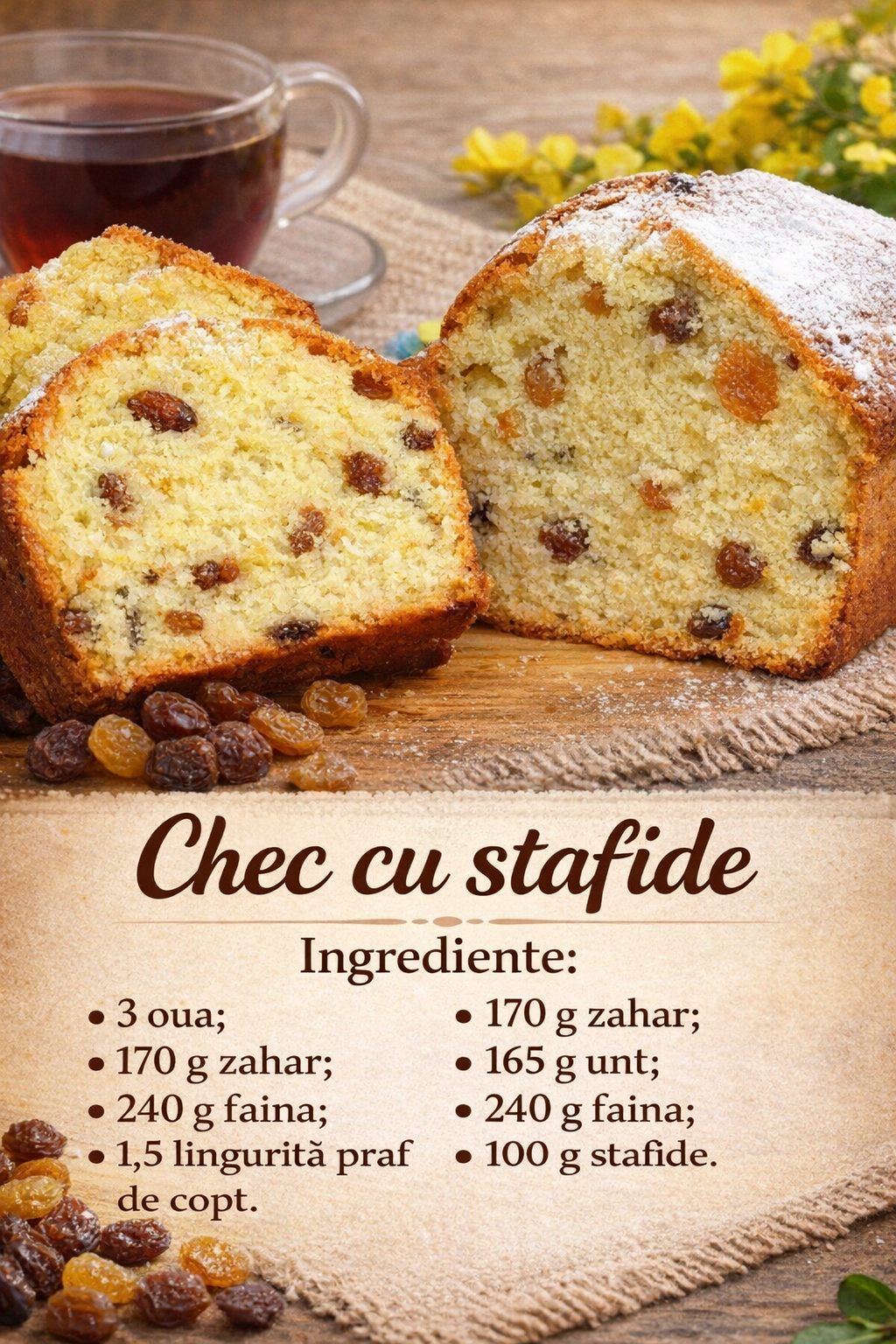 Nu rata:  Un chec delicios care se face foarte repede- Contine stafide si are aroma de vanilie
