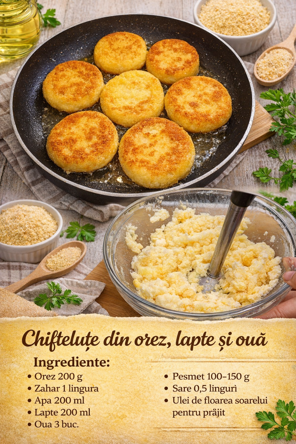 Scoateti imediat chiftelutele de orez din tava pe prosoape de hartie pentru a scurge excesul de ulei.