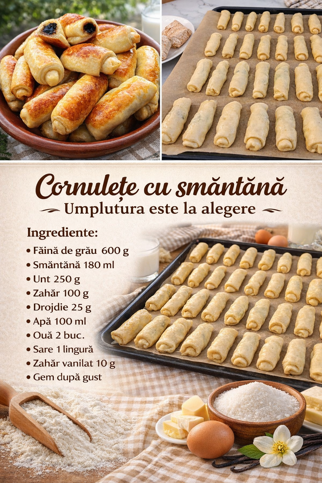 Puneti cornuletele e pe o foaie de copt tapetata cu hartie de copt si lasati cateva minute.