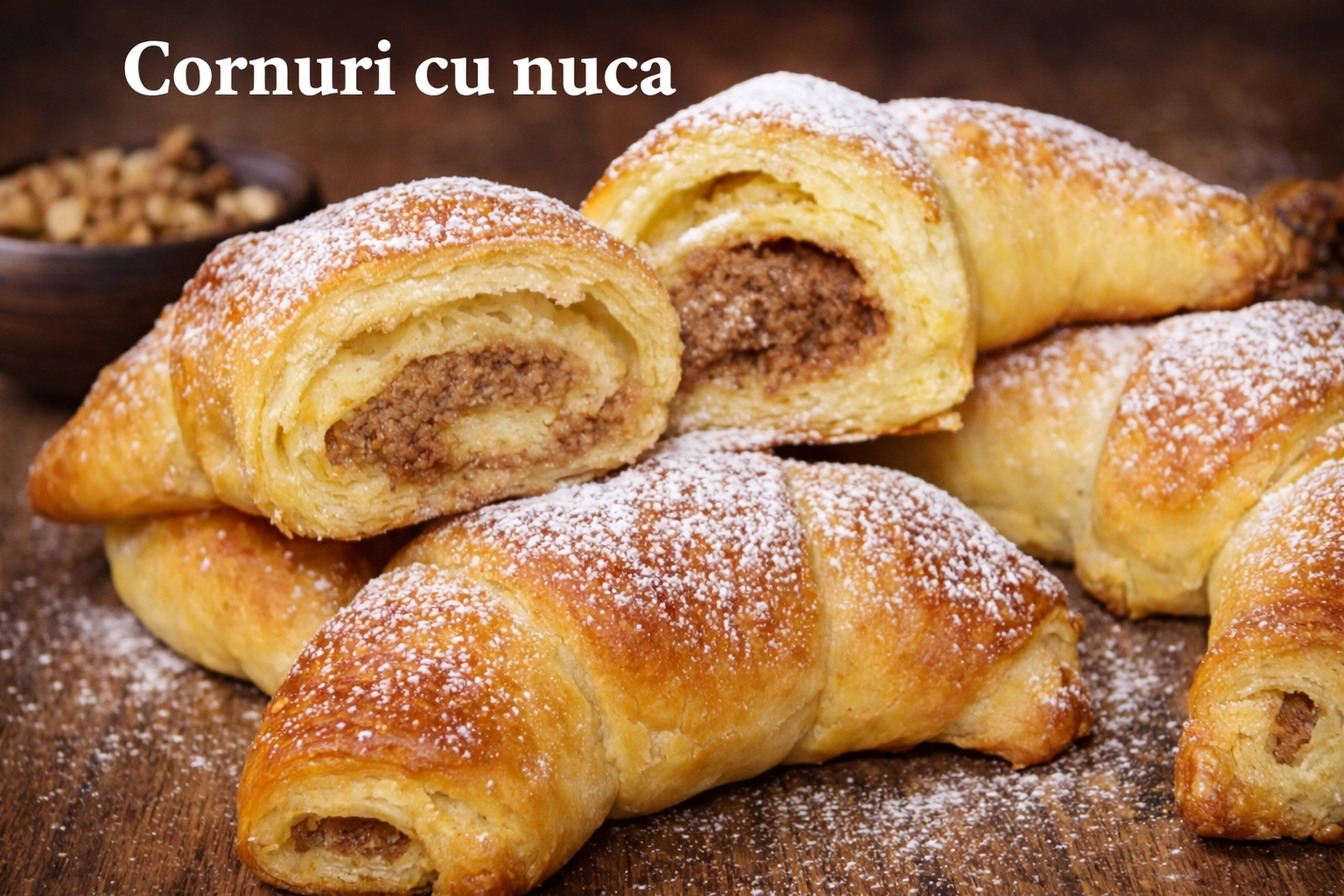 Puneti cornurile pe o tava de copt, se da in cuptorul incins la 180°C si se coc pana devin aurii.