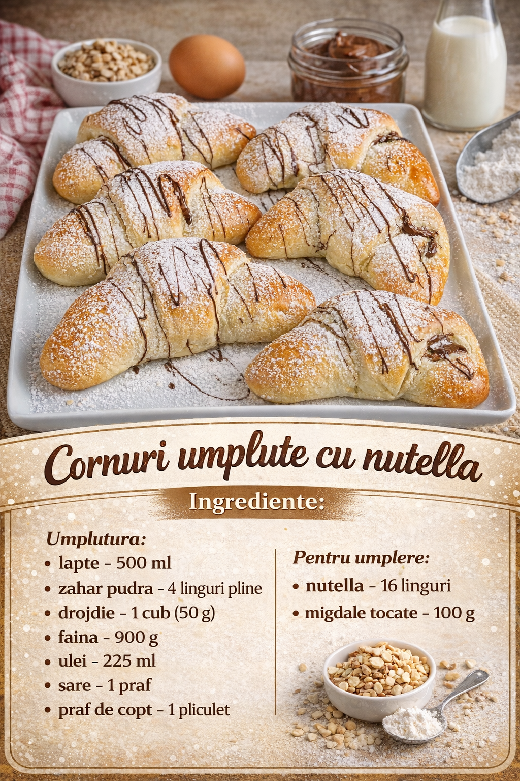 Cornuri umplute cu nutella- Pufoase si foarte delicioase, sunt pe placul tuturor