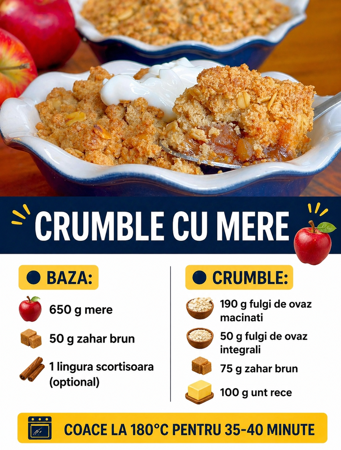 🍏 Crumble cu mere – simplu, aromat si super delicios
