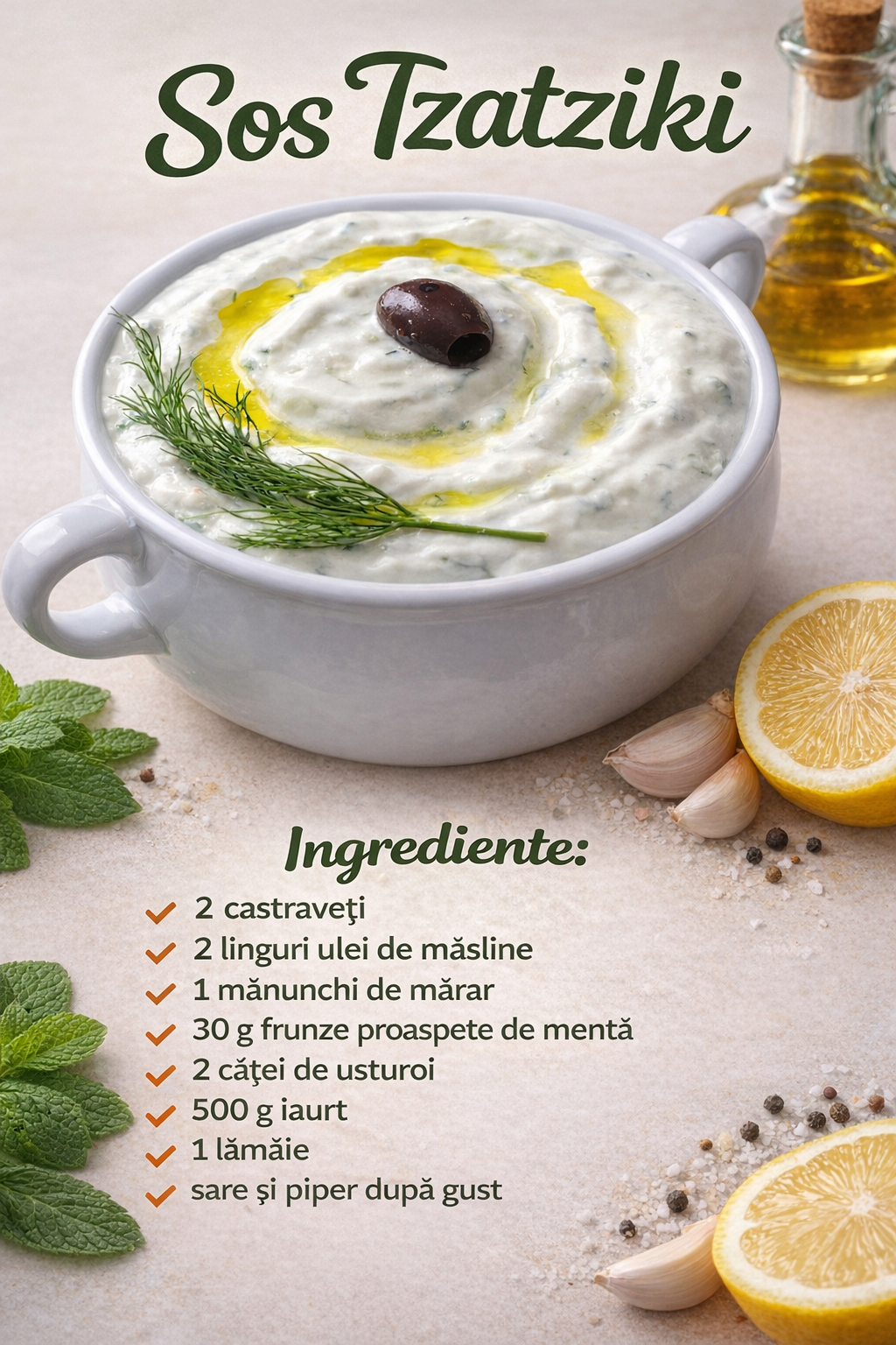 In Grecia, sosul Tzatziki este oferit si ca aperitiv, dar aceasta delicioasa salata este servita si cu carne. Este foarte cremos si delicios, deci este o adevarata delicatesa racoritoare. Cu cat este mai rece, cu atat este mai gustos!