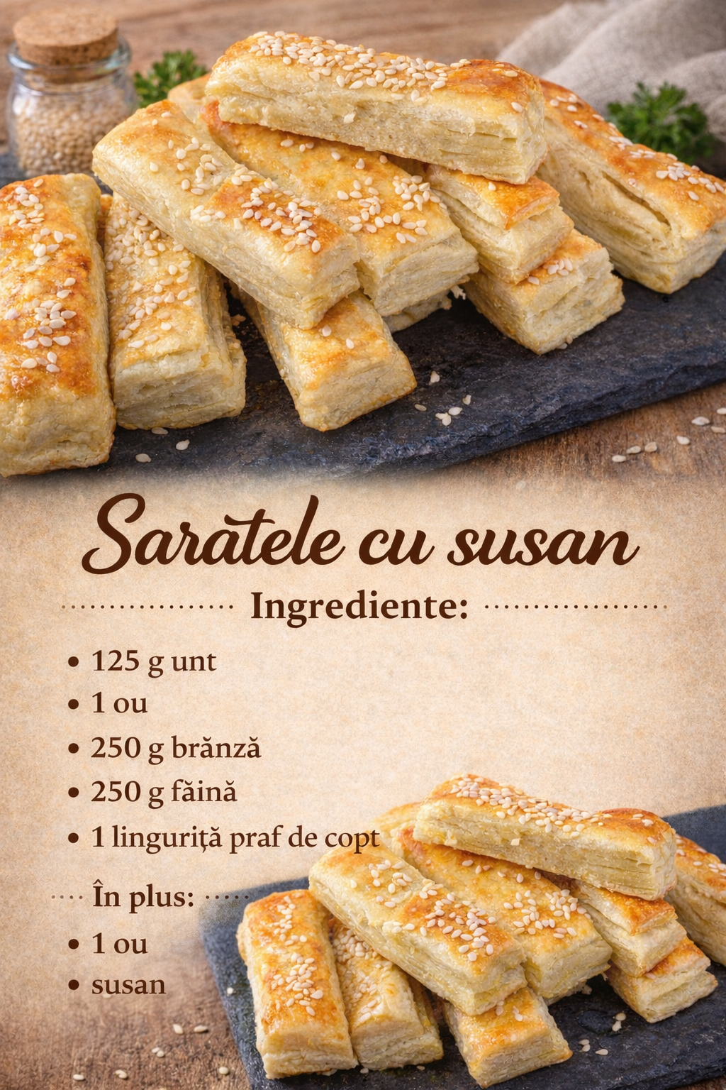 Coaceti in cuptorul preincalzit la 200°C timp de aproximativ 15-20 de minute sau pana capata o culoare aurie.