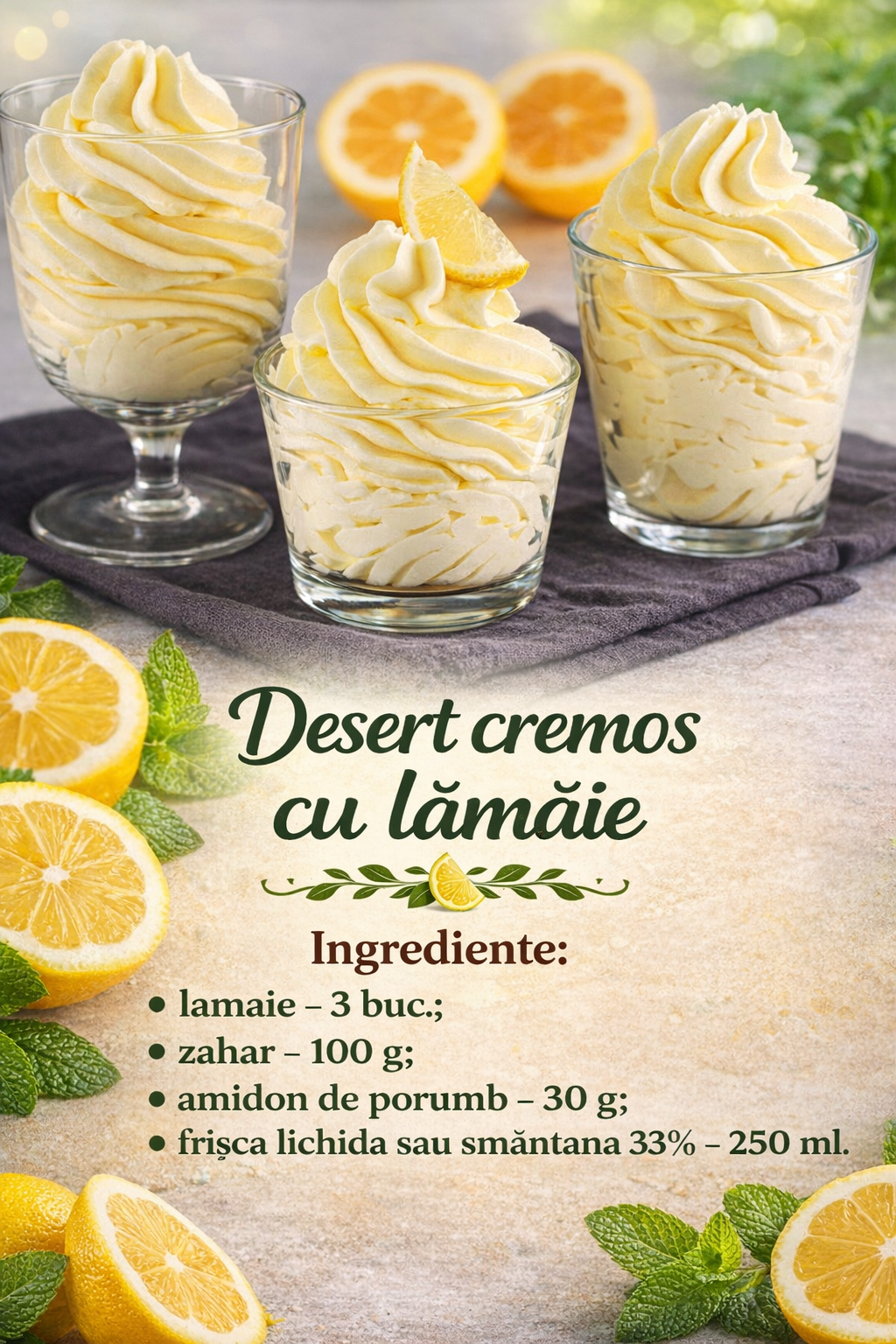 Adaugati treptat sucul de lamaie in crema, bateti cu un mixer.