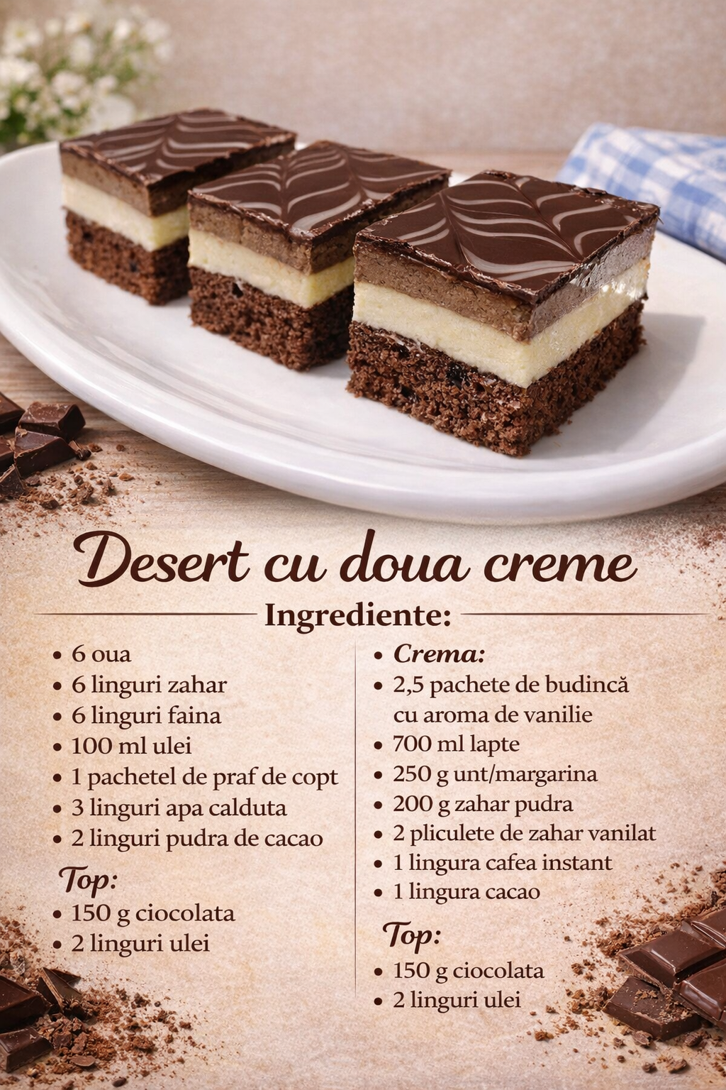 Jumatate din crema rezultata se amesteca cu cacao si cafea.