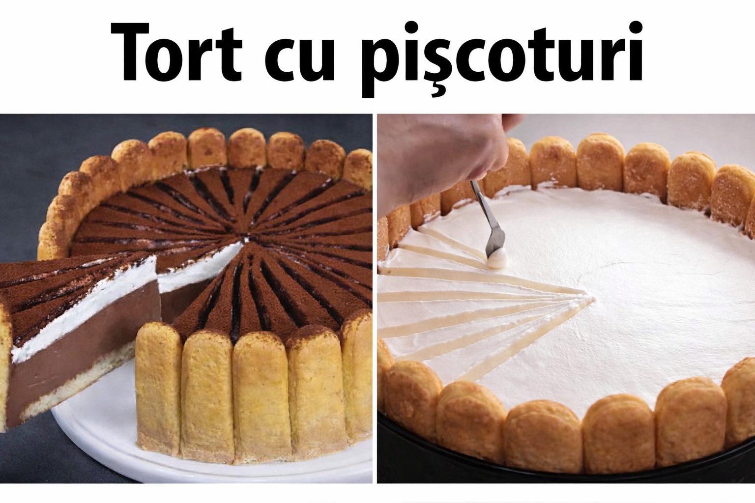 Inmuiati fiecare piscot in lapte si aranjati-le in jurul perimetrului formei si apoi pe toata suprafata fundului.