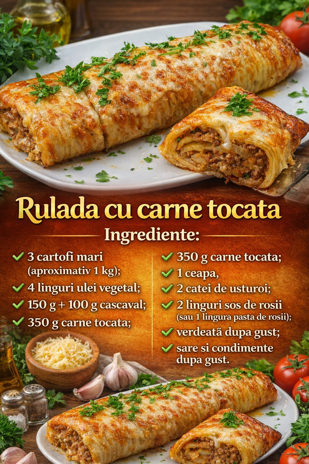 Nu rata:  Rulada din cartofi cu umplutura de ciuperci si pui- Suculenta si foarte delicioasa
