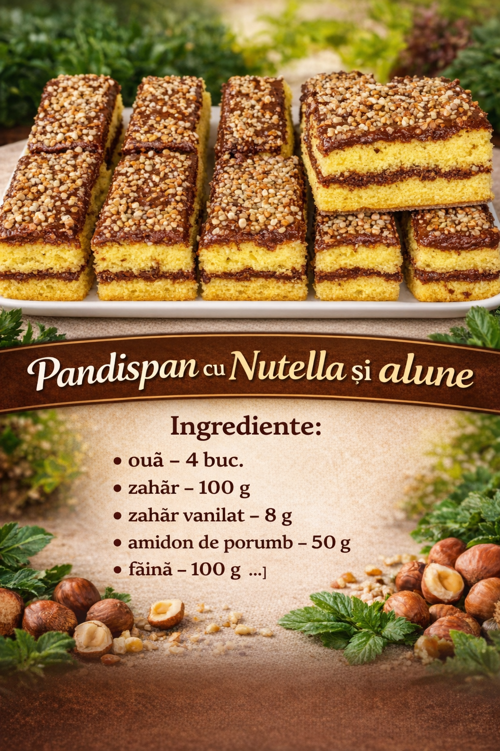 La final se presara desertul cu alune tocate si se serveste taiat bucatele.