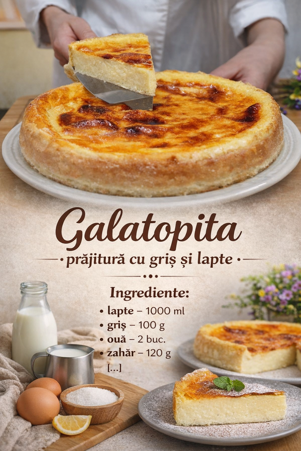 Galatopita, prajitura cu gris si lapte – Te duce cu gandul la o vancanta in Grecia