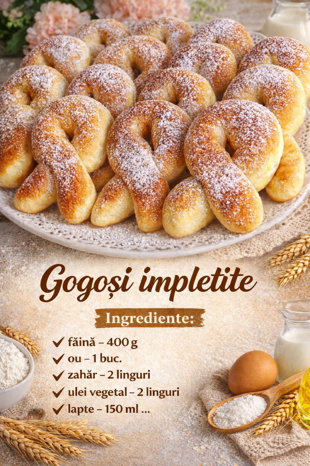 Scoateti gogosile pe prosoape de hartie pentru a absorbi execesul de ulei si pudrati cu zahar pudra.