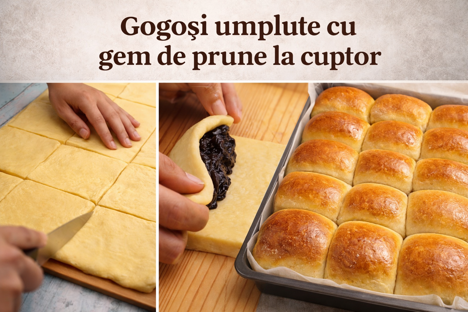 Cand totul este gata, ungem cu untul topit si dospim aproximativ 20 de minute.
