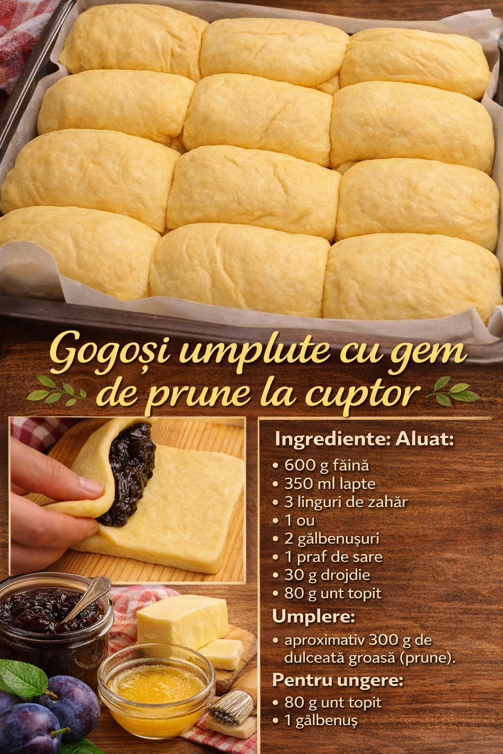 Cand totul este gata, ungem cu untul topit si dospim aproximativ 20 de minute.