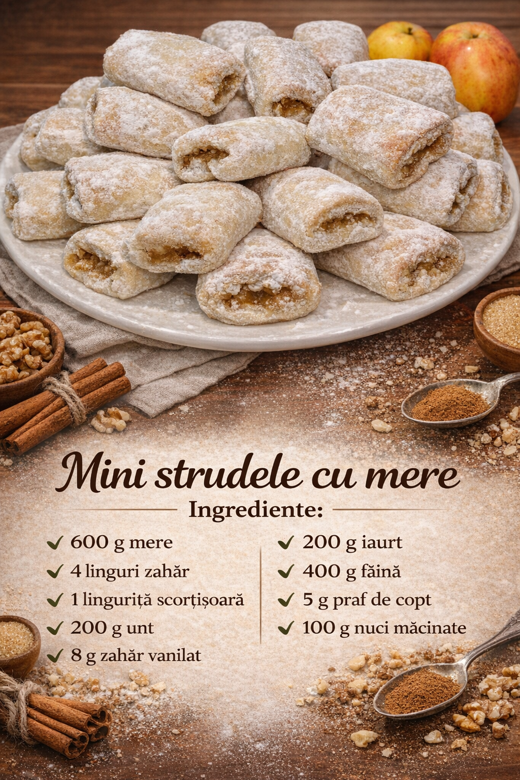 Indoiti marginile, apoi taiati fiecare parte in mini strudele de aproximativ 3 cm lungime.