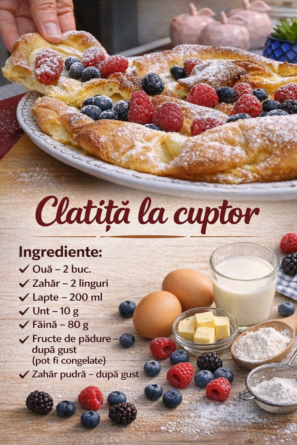 In general, pot spune ca aceasta clatita finlandeza, care se numeste Pannukakku, este atat de gustoasa incat chiar si ca desert poate inlocui prajiturile sau ceva dulce pentru ceai.