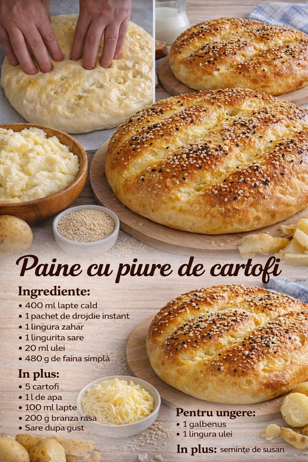 Paine cu piure de cartofi, foarte buna si usor de facut- Se mananca imediat