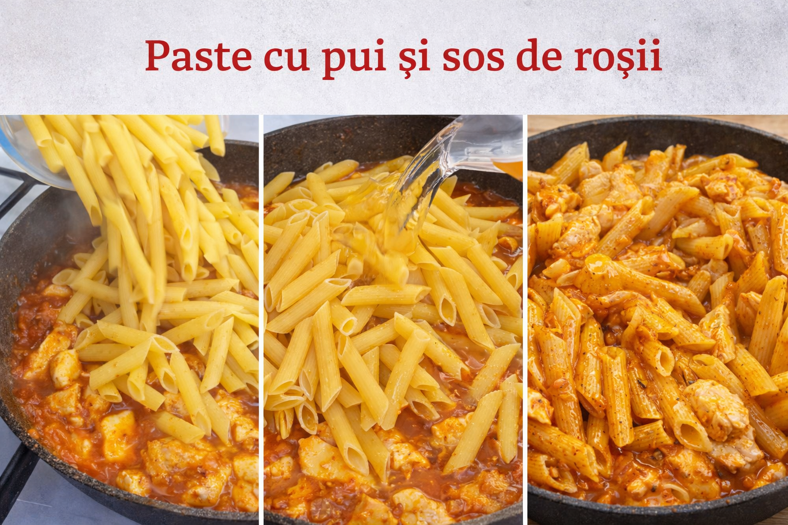 Paste cu pui in sos de rosii. Cina rapida, usoara si gustoasa