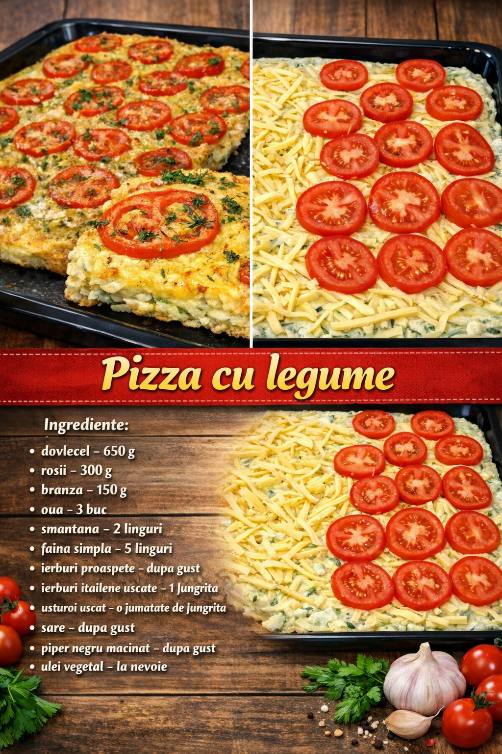 Bateti trei oua in bolul cu dovlecei, presarati cu ierburi tocate (pastrati cateva deoparte pentru a stropi pizza) si adaugati usturoi uscat sau proaspat presat.