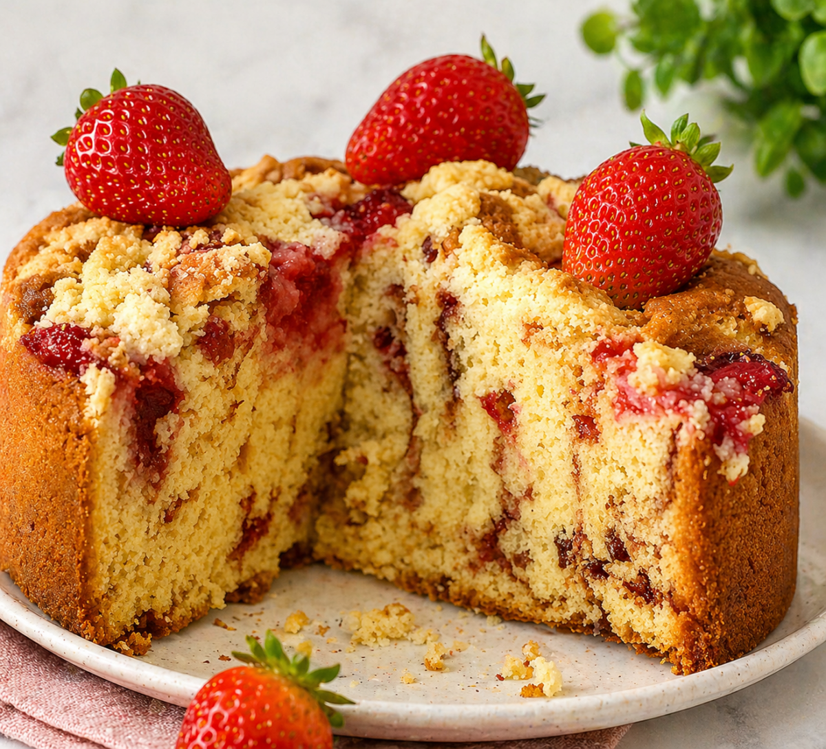 😋 Pufoasa, aromata si plina de capsuni suculente – perfecta pentru weekend!