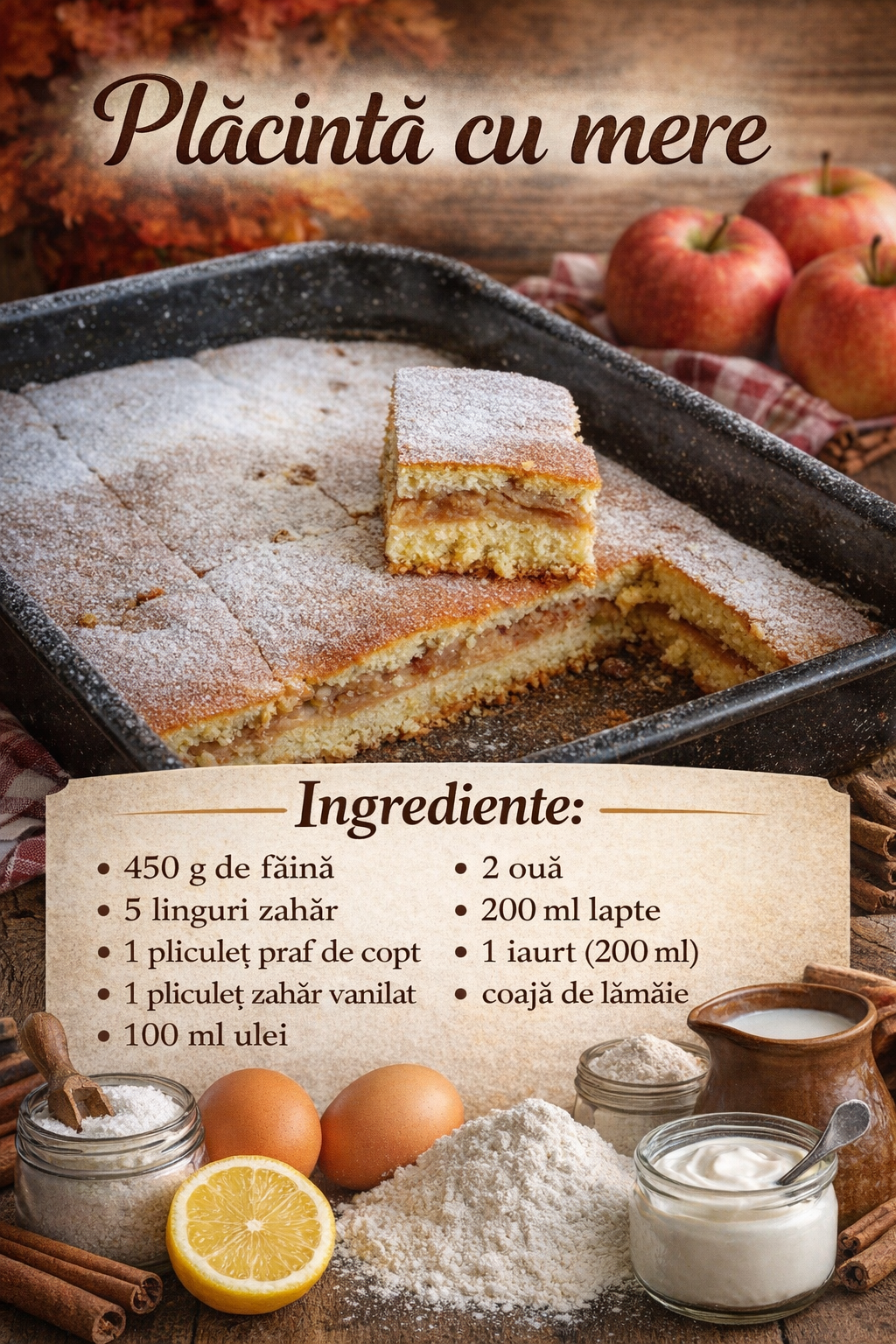 Stiu acest tort cu mere ca fiind foarte delicios si rapid. Il pot prepara pe tot parcursul anului.