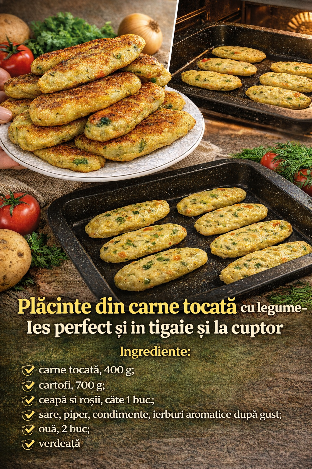 Placinte din legume si carne tocata- Ies perfect si in tigaie si la cuptor
