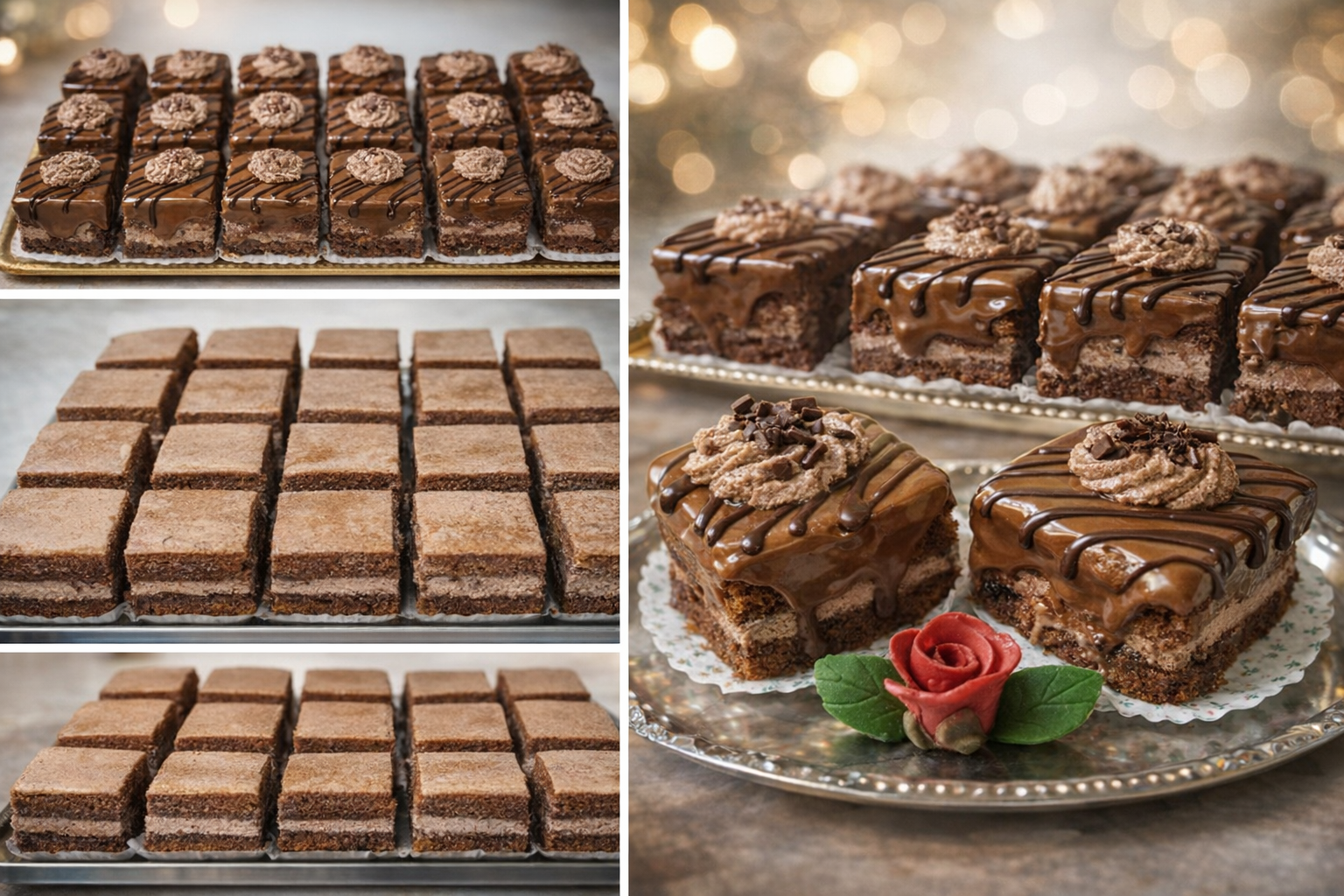 Se pune cate o lingura de glazura deasupra fiecarui cub si se netezeste din interior spre exterior, astfel incat sa curga pe margini.