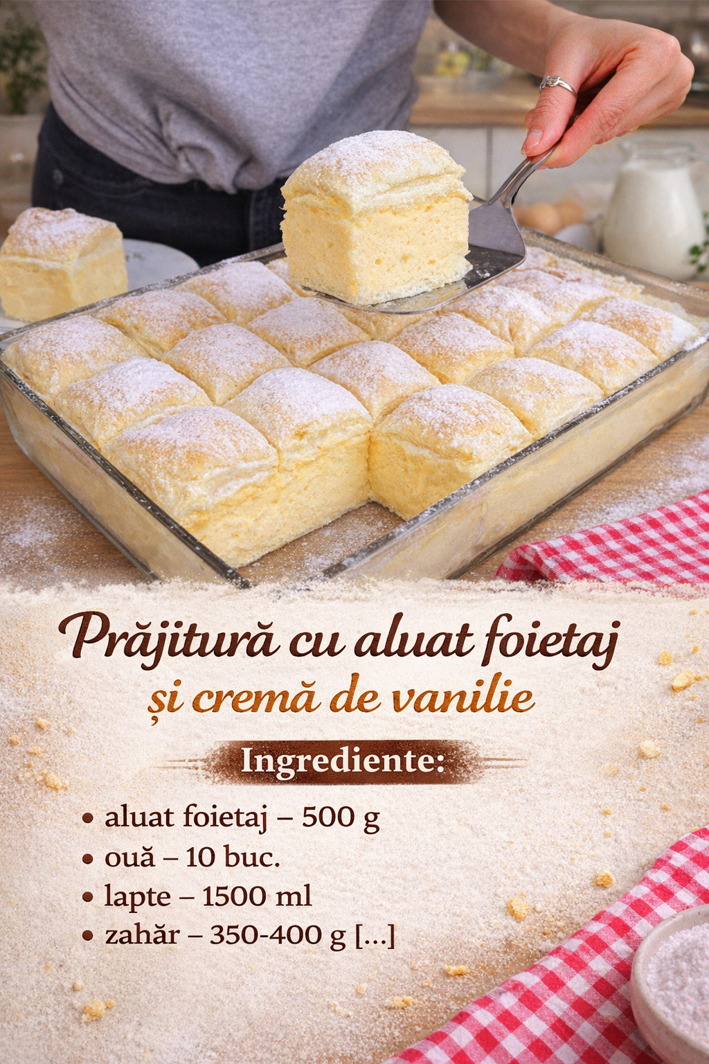Puneti prima parte a foietajului intr-o tava unsa cu unt.