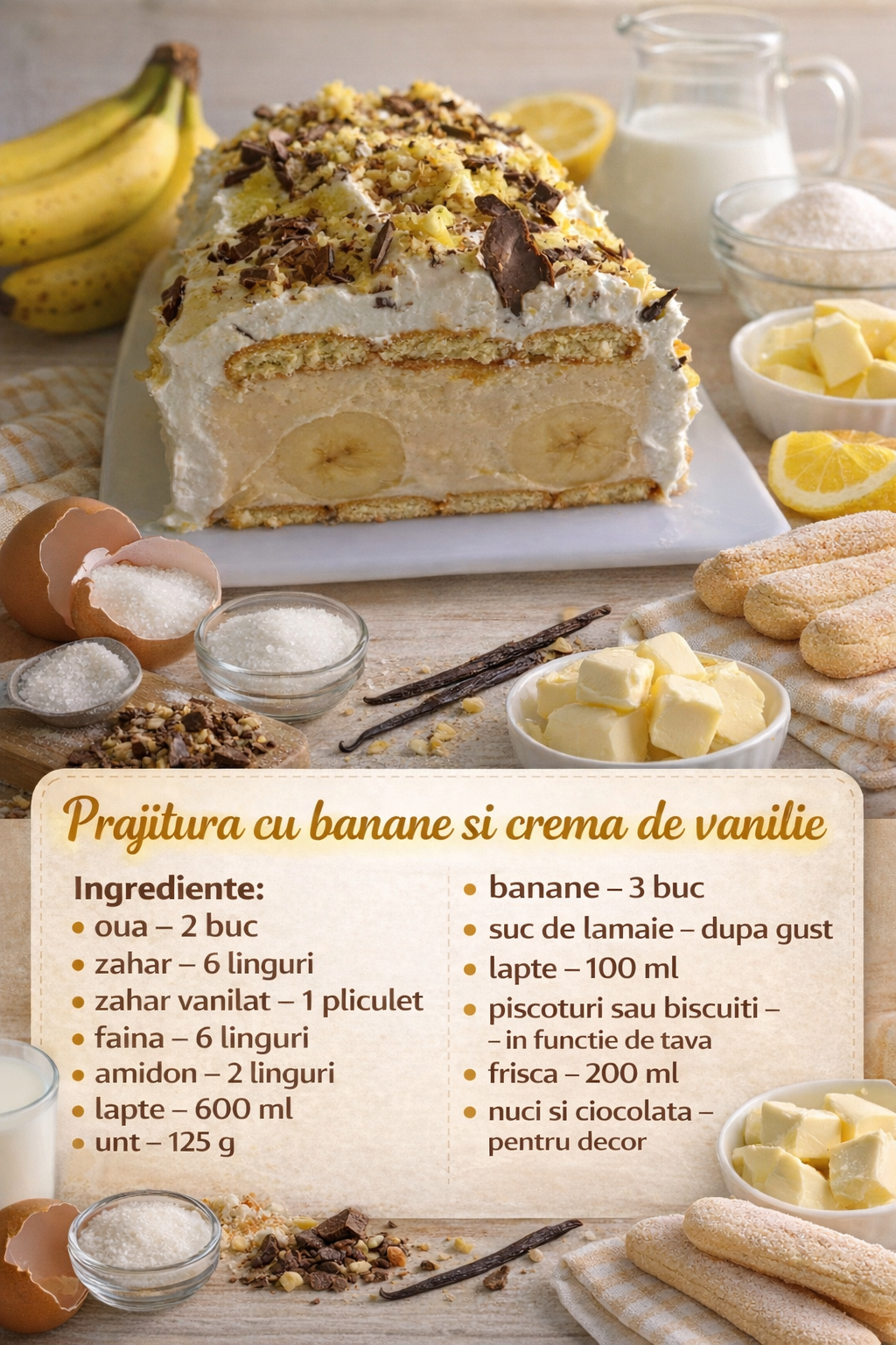 Reteta pentru prepararea unui desert cremos de banane este usoara si va multumi pe toata lumea.