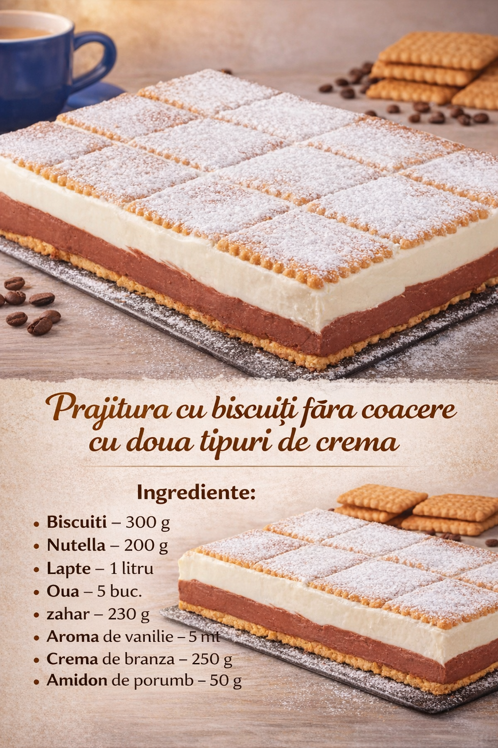 Deasupra mai punem un rand de biscuiti si le lasam sa se raceasca la frigider pentru aproximativ 3 ore.