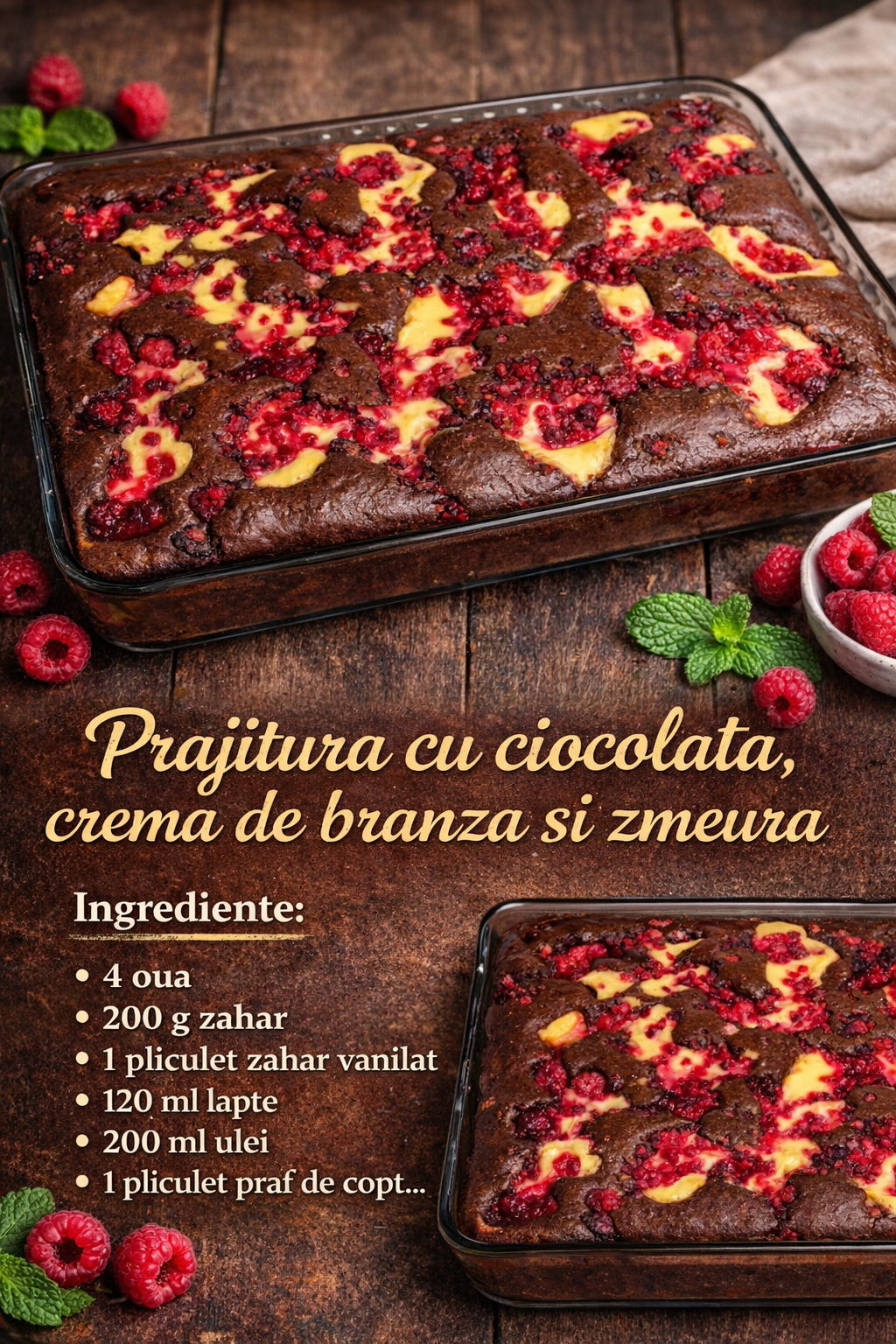 Adaugati intr-un bol 500 g branza de vaci cu continut scazut de grasimi, 175 g crema de branza, 2 oua, 100 g zahar, zahar vanilat si 2 pachete de budinca de vanilie.