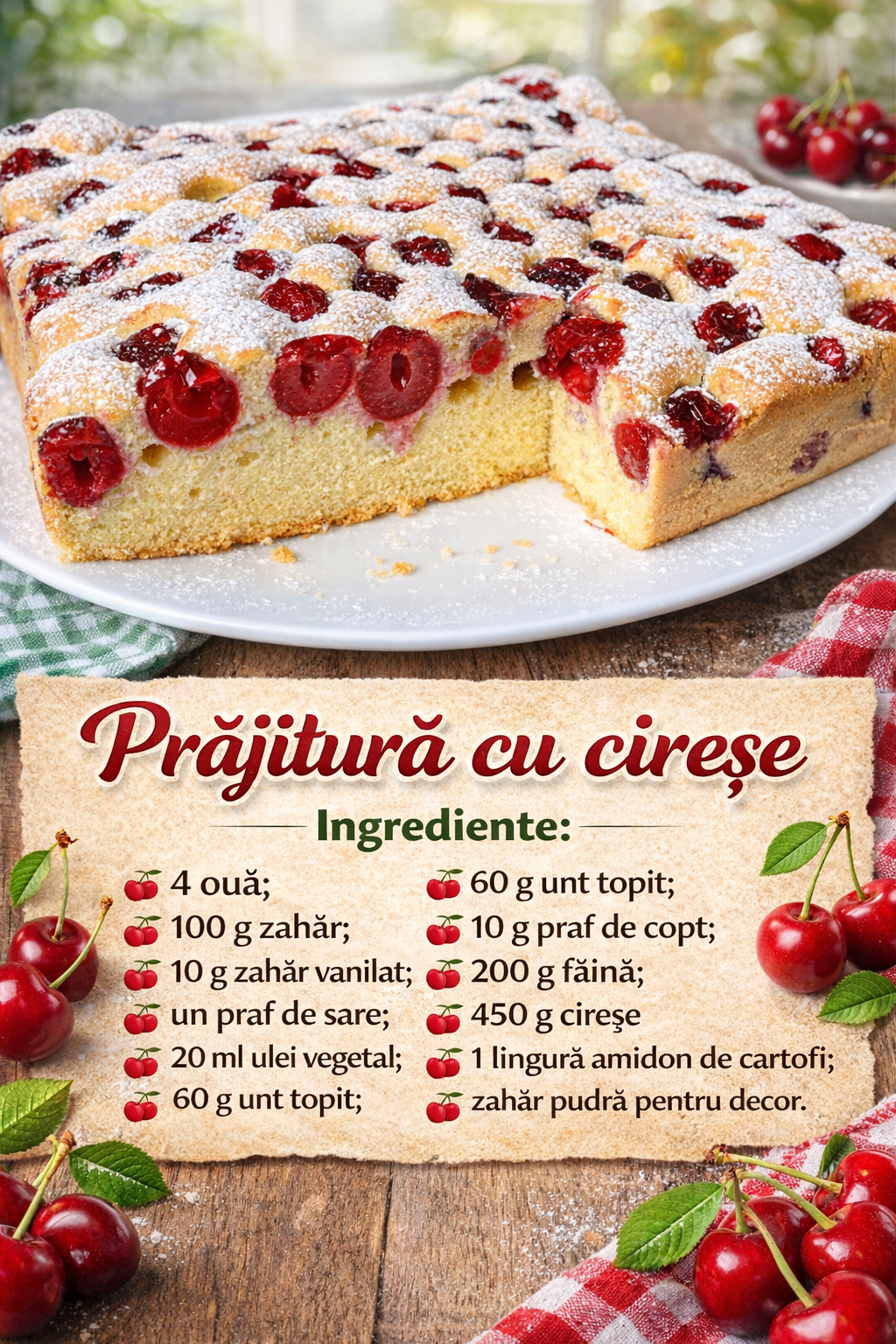 450 g cirese cu samburi ( 390 g fara samburi)