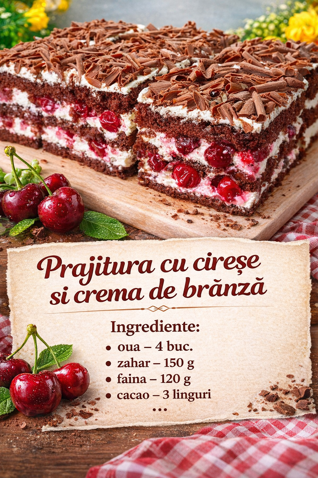 Intindem din nou crema si adaugam cirese.