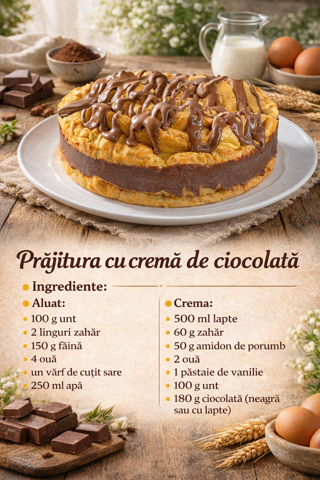 🍰 Prajitura cu crema de vanilie si ciocolata – fina, pufoasa si delicioasa