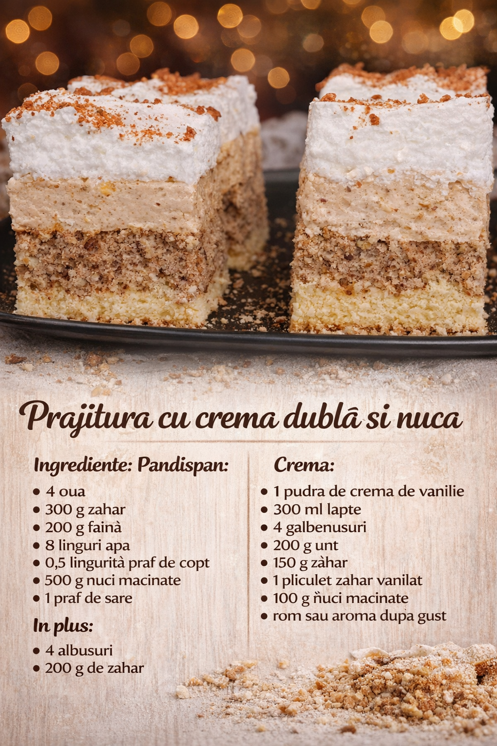Se netezesc albusurile peste crema si se pun la loc racoros cateva ore.