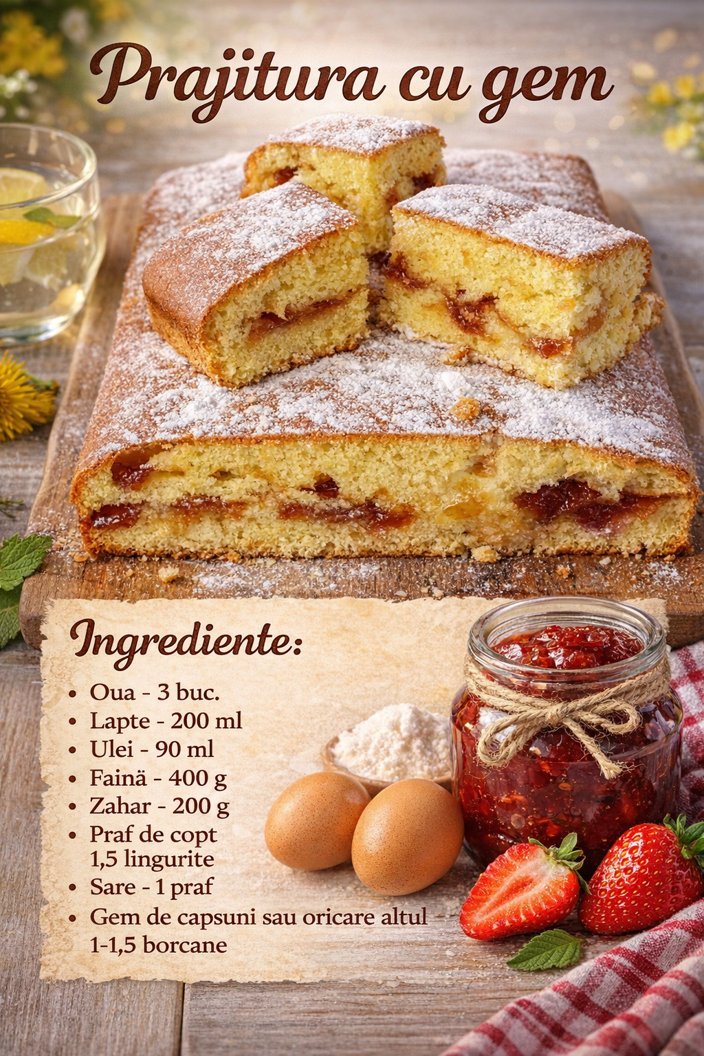Puteti gasi cu usurinta ingredientele in bucataria dvs. si nu vor exista probleme cu umplutura. La urma urmei, fiecare gospodina are un borcan cu gem sau dulceata. Ai grija insa, veti dori sa gatiti acest tort din nou si din nou!