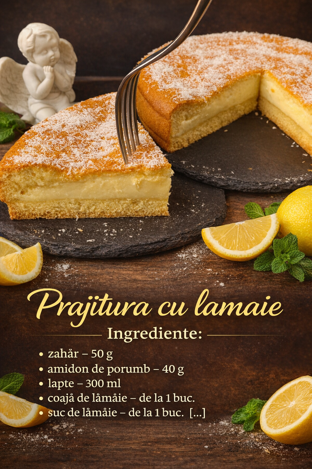 Se lasa prajitura cu lamaie sa se raceasca si se presara cu nuca de cocos maruntita.