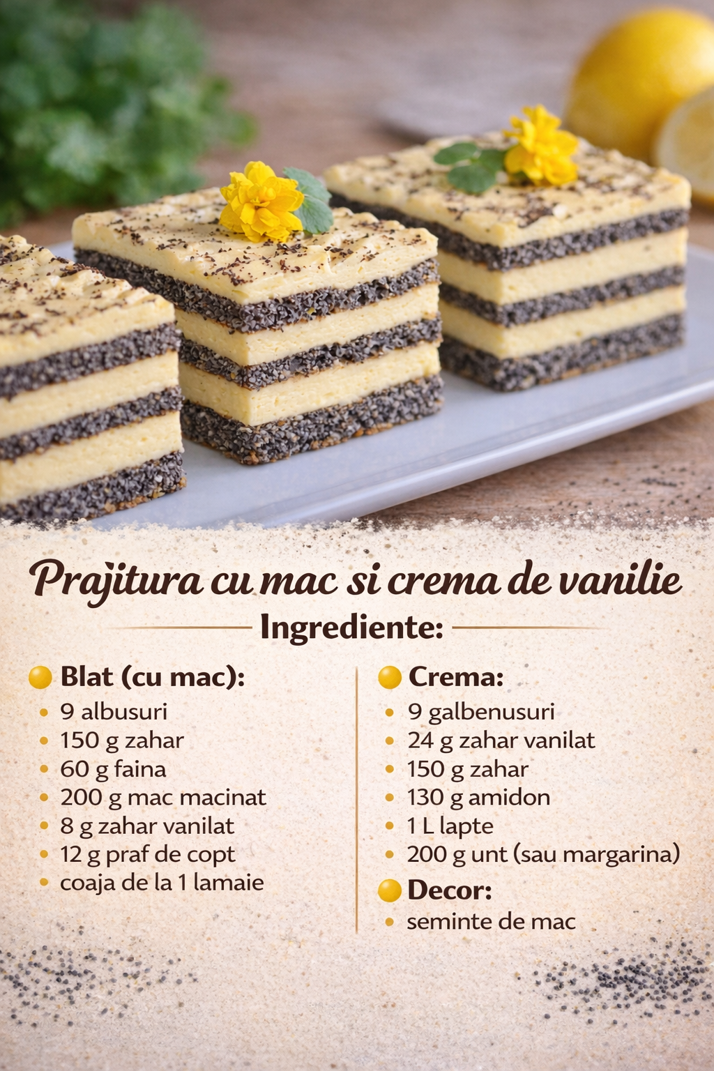❄️ Presara mac si lasa prajitura la frigider cateva ore pana se intareste.