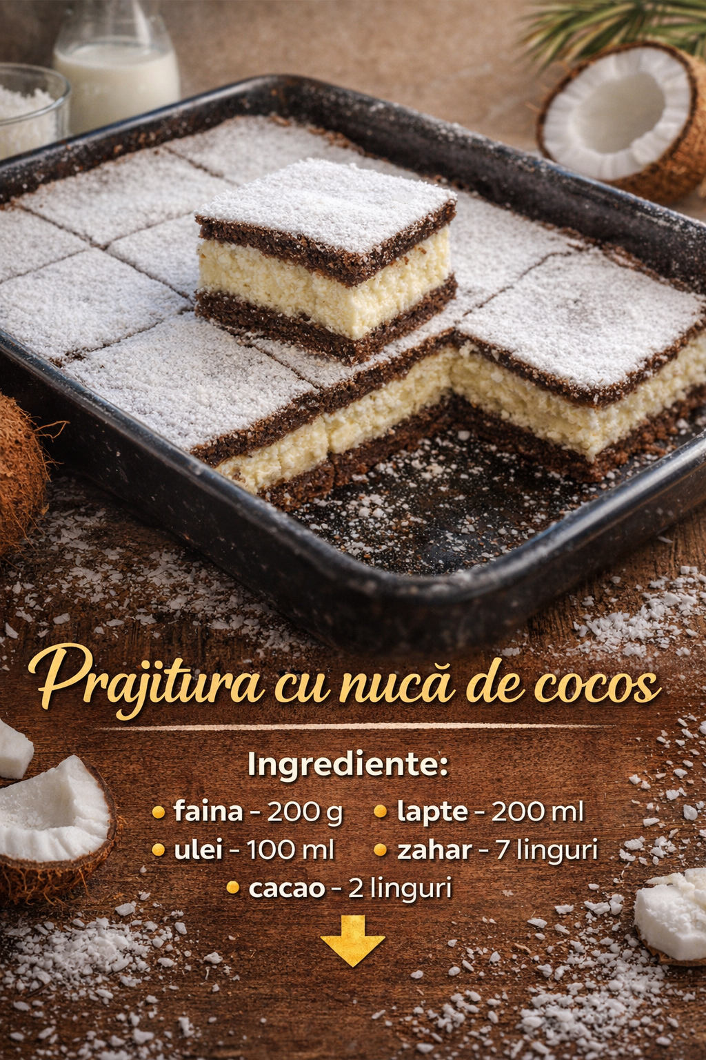Daca iti place gustul si mirosul exotic de nuca de cocos, acest desert este pentru tine. Incearca-l si vei vedea ca datorita lui nu numai ca iti vei face casa sa miroase placut, ci vei face si familia fericita. In plus, contine doar ingrediente comune pe care le ai de obicei acasa sau care nu sunt greu de obtinut.