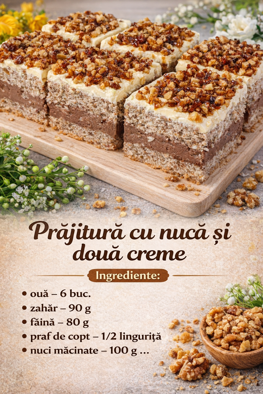 La final, amestecati cu grija si incet nucile macinate in aluat.