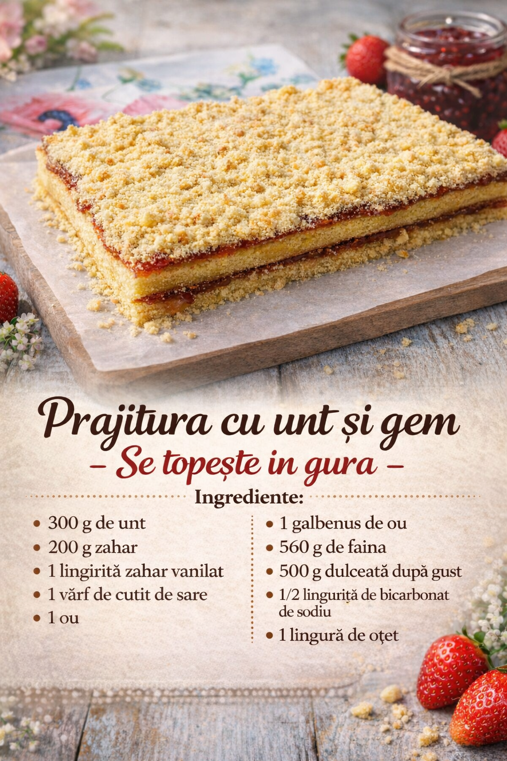 Asezati a doua bucata de aluat pe partea unsa si intindeti-o si cu gemul preferat.