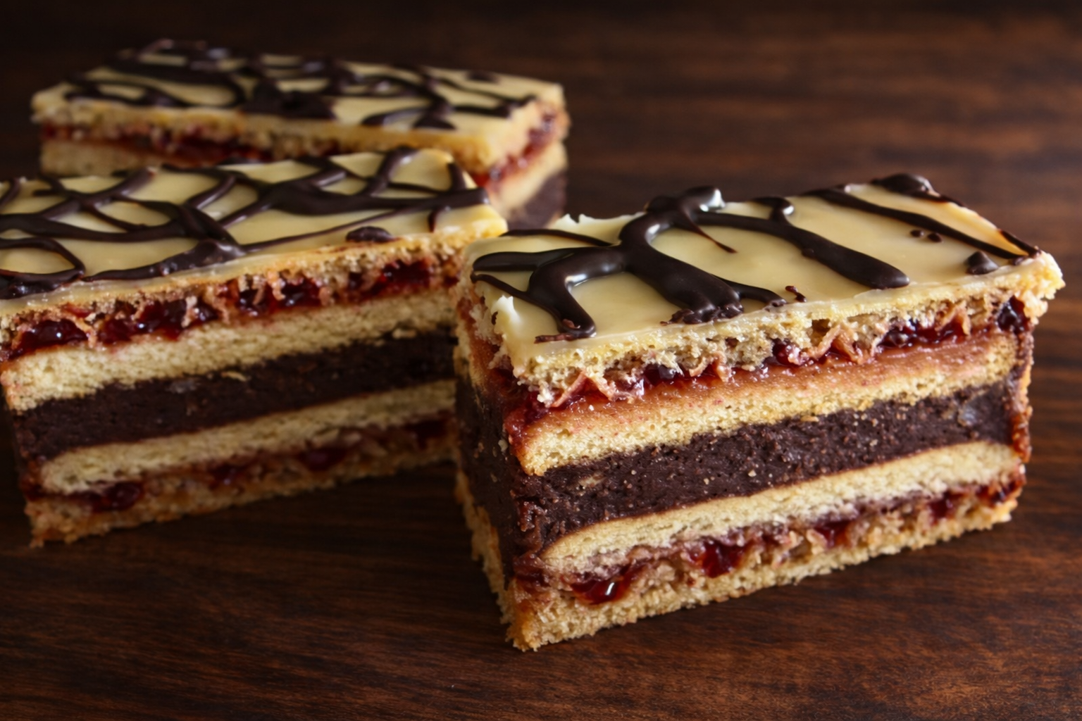 Prajitura Napolitana- Se umple cu gemul preferat, biscuiti si o crema din nuci macinate
